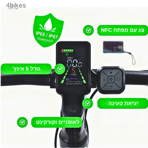 צג לאופניים / קורקינט בגודל 5 אינץ' + פתח NFC + טעינה טייפ סי