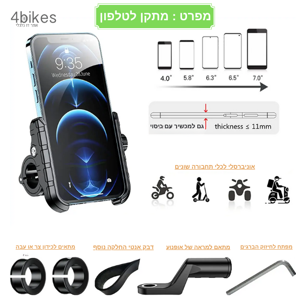 מתקן לטלפון לאופנוע/טרקטורון/ קורקינט/ אופניים