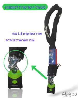 מנעול שרשרת לאופנוע 12 מ”מ באורך 1.5 מטר חברת Tonyon