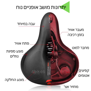 - נוחות – ג'ל יציב יותר ברכיבה ממושכת או קצרה ומספק נוחות מלאה לעומת ספוג שלאחר כמה רכיבות תגישו את הפלסטיק של כיסא.