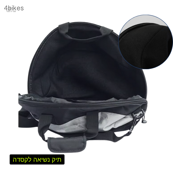 תיק נשיאה לקסדה עם רצועה המאפשר לתלות את התיק על הצוואר וגם ידיות אחיזה.
