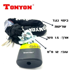 מנעול שרשרת לאופנוע 12 מ"מ באורך 1.5 מטר חברת Tonyon
